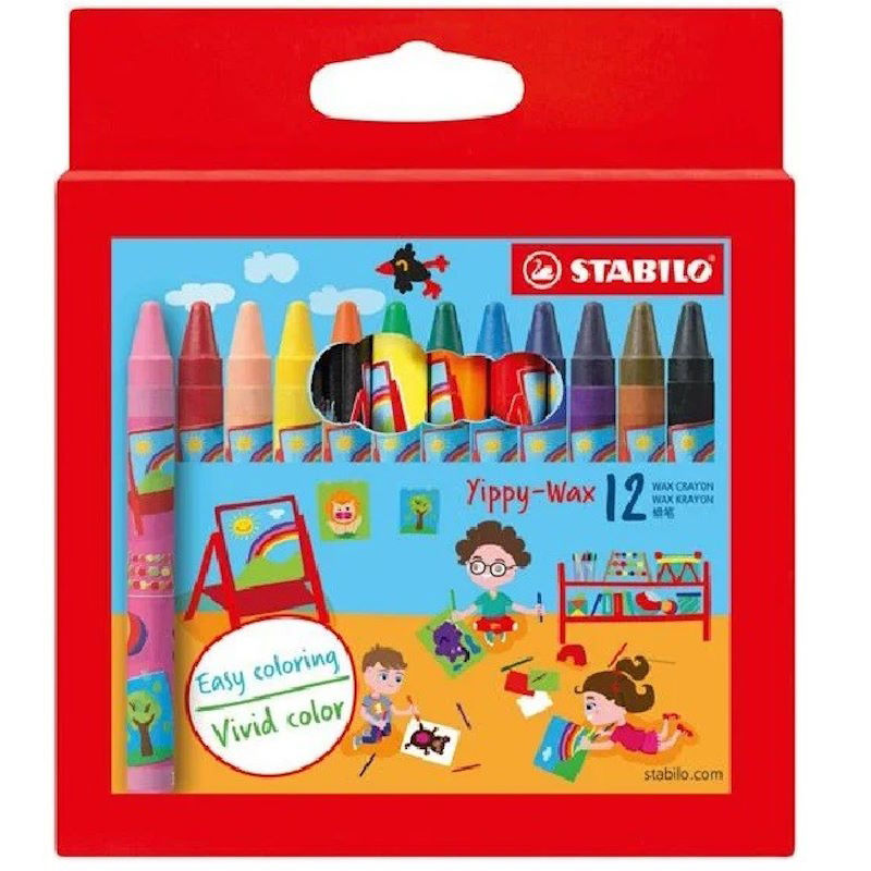Συσκευασία με 12 χρώματα κηροπαστέλ της εταιρείας STABILO , κατάλληλα και για παιδιά λόγω της υφής τους. Λεπτές κηρομπογίες, με λαμπερά χρώματα, για απαλή και εύκολη εφαρμογή. Ασφαλές για παιδιά άνω των 3 ετών.