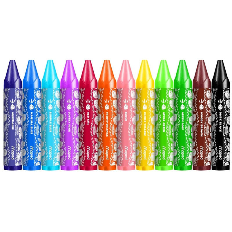 Οι κηρομπογιές Maped Wax Maxi Jungle Fever 12 τεμάχια προσφέρουν την ιδανική πρώτη επαφή των παιδιών με τον κόσμο της ζωγραφικής εξασφαλίζοντας άνεση και ασφάλεια. Είναι σχεδιασμένες για να καλύπτουν την ανάγκη των μικρών χεριών για σταθερό κράτημα επιτρέποντας στους μικρούς δημιουργούς να εκφραστούν ελεύθερα πάνω στο χαρτί χωρίς περιορισμούς.