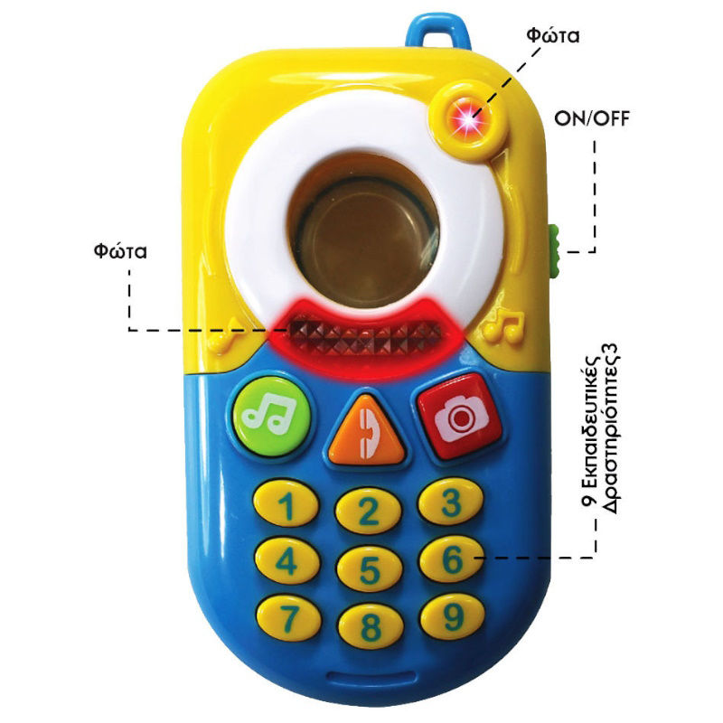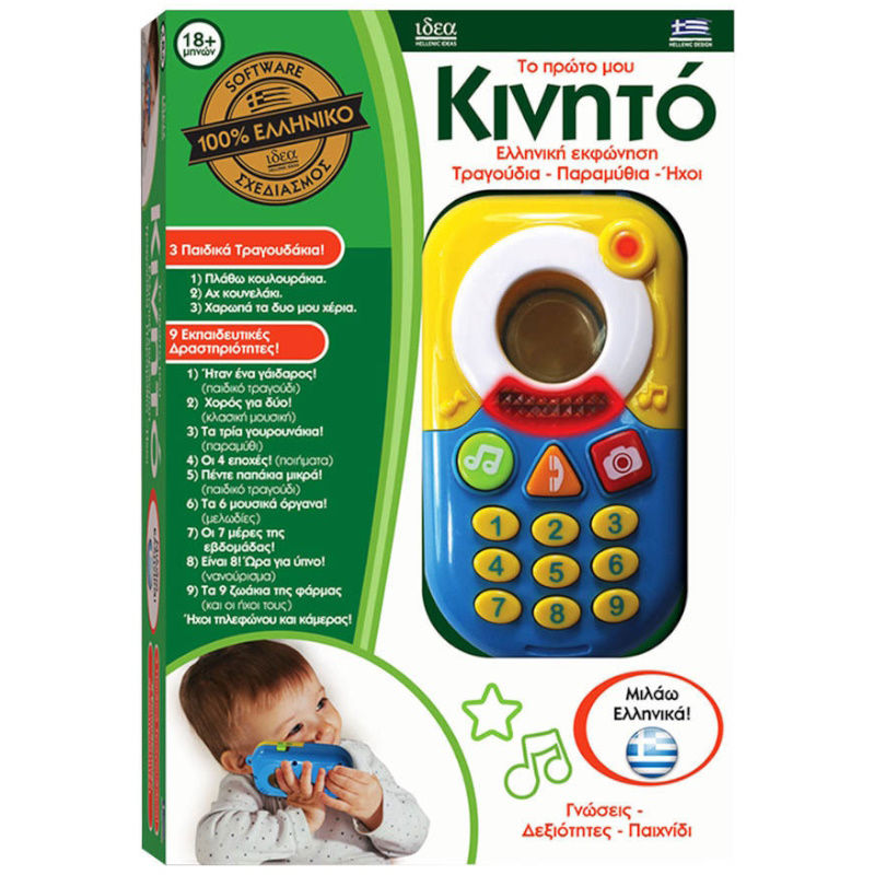 Το πρώτο μου κινητό με 9 εκπαιδευτικές δραστηριότητες:1) Ήταν ένας γάιδαρος (παιδικό τραγουδάκι).2) Χορός για δύο! (κλασική μουσική)3) Τα τρία γουρουνάκια (παραμύθι)4) Οι 4 εποχές (ποιήματα)5) Πέντε παπάκια μικρά (παιδικό τραγουδάκι)6) Τα 6 μουσικά όργανα (μελωδίες)7) Οι 7 μέρες της εβδομάδας (ποιηματάκια)8) Είναι 8 ... ώρα για ύπνο! (νανούρισμα)9) Τα 9 ζωάκια της φάρμας (και οι ήχοι τους).Ήχοι τηλεφώνου, κάμερας και επιπλέον 3 τραγουδάκια.
