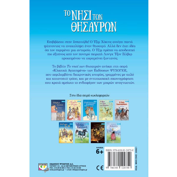 Το βιβλίο Το νησί των θησαυρών ανήκει στη σειρά «Κλασικά Αγαπηµένα» των Εκδόσεων ΨΥΧΟΓΙΟΣ, που περιλαµβάνει διαχρονικές ιστορίες, γραµµένες µε απλό και κατανοητό τρόπο, και µε εντυπωσιακή εικονογράφηση που κρατά αµείωτο το ενδιαφέρον των µικρών αναγνωστών.