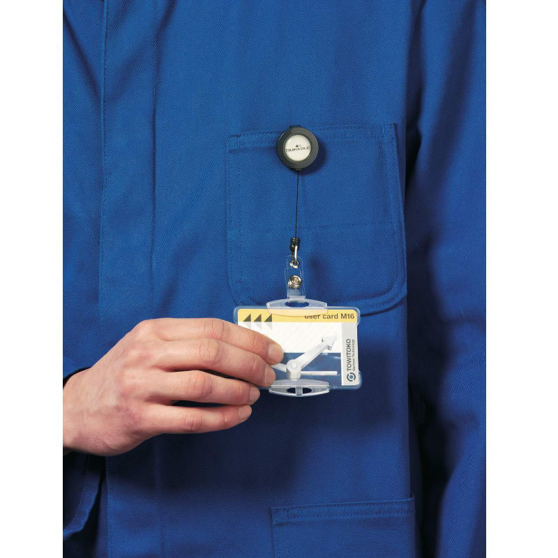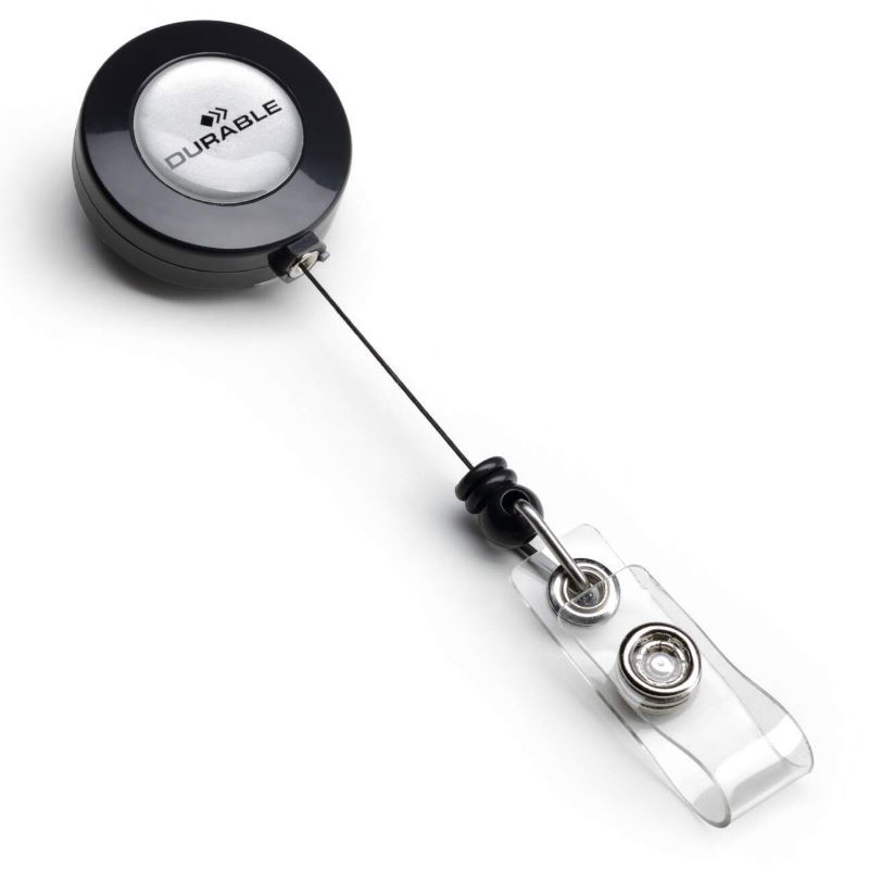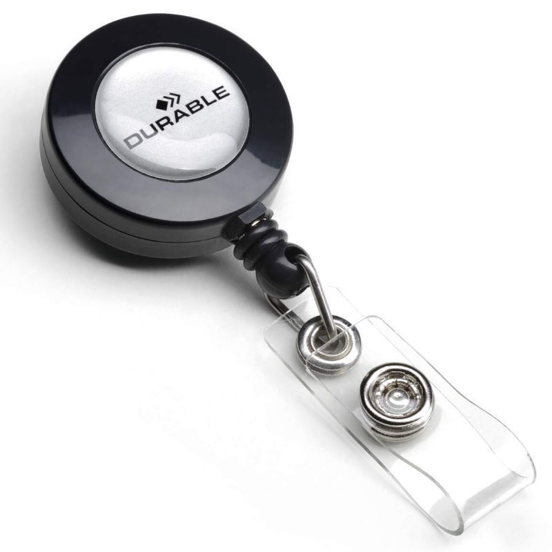 Το Durable Jojo είναι ένα πρακτικό και κομψό κλιπ με μηχανισμό επαναφοράς (jojo), σχεδιασμένο για τη στερέωση καρτών συνεδρίων, διαπιστευτηρίων και κονκάρδων. Διαθέτει σταθερό μεταλλικό κλιπ για προσάρτηση σε ρούχα ή ζώνη, καθώς και ισχυρό κορδόνι μήκους έως 80cm που επανέρχεται αυτόματα. Ιδανικό για επαγγελματικά περιβάλλοντα, εκθέσεις και εταιρικά events.