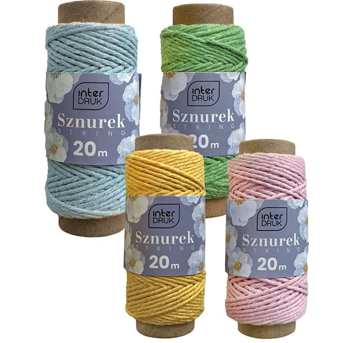 Σπάγγος κορδόνι InterDruk 20m Pastel 345660 σε 4 διαφορετικά χρώματα.