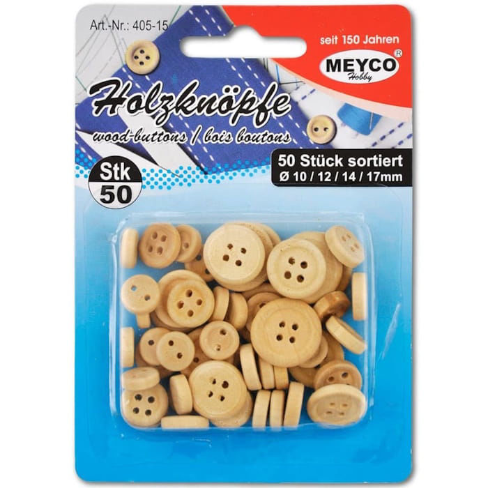 Αυτά τα ξύλινα κουμπιά της Meyco αποτελούν μια εξαιρετική συλλογή 50 τεμαχίων σε διάφορα μεγέθη, προσφέροντας μια φυσική και διαχρονική αισθητική στις δημιουργίες σας. Κατασκευασμένα από ποιοτικό φυσικό ξύλο με λεία επιφάνεια, διαθέτουν ανθεκτικότητα στη χρήση και αναδεικνύουν την υφή του υλικού, προσδίδοντας ένα ζεστό και οικολογικό ύφος που ταιριάζει με πλήθος υφασμάτων.