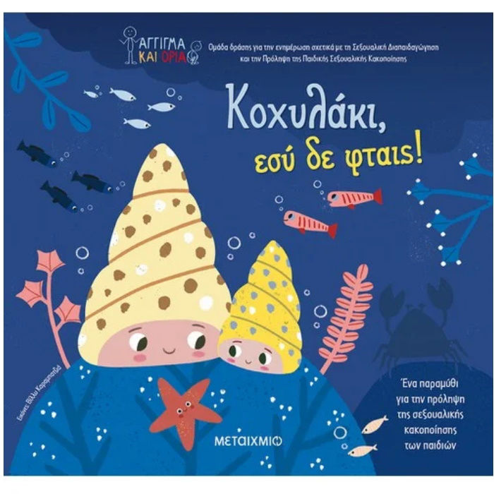 Πόσο χαρούµενο είναι το Κοχυλάκι όταν παίζει µε την παρέα του! Σήµερα ακόµα περισσότερο, γιατί βρήκε έναν καινούριο φίλο, τον Κάβουρα. Οι δυο τους απολαµβάνουν τις βουτιές και τα παιχνίδια στη θάλασσα. Τι γίνεται όµως όταν φτάνουν στον σκοτεινό βυθό; Ο Κάβουρας έχει αλλάξει… Το Κοχυλάκι φοβάται αλλά βρίσκει το θάρρος να φύγει µακριά.