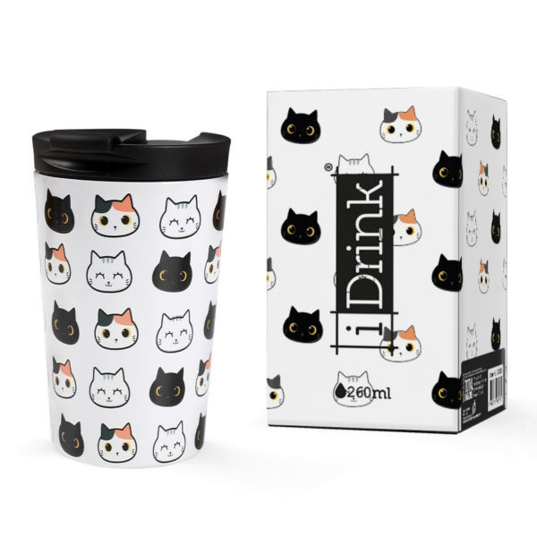 Η ανοξείδωτη κούπα iDrink Cat 350ml είναι η ιδανική πρόταση για όσους αγαπούν τις γάτες και το ιδιαίτερο design! Με χαριτωμένο σχέδιο γατούλας και ανθεκτική κατασκευή από ανοξείδωτο ατσάλι, διατηρεί το ρόφημά σου στη σωστή θερμοκρασία, ενώ παράλληλα εντυπωσιάζει με την εμφάνισή της. Η χωρητικότητα των 350ml είναι ιδανική για καφέ, τσάι ή ρόφημα της επιλογής σου, ενώ το διπλό τοίχωμα εξασφαλίζει μόνωση και άνετο κράτημα. Kρατάει το ρόφημα σας 6 ώρες ζεστό και 10 ώρες κρύο.