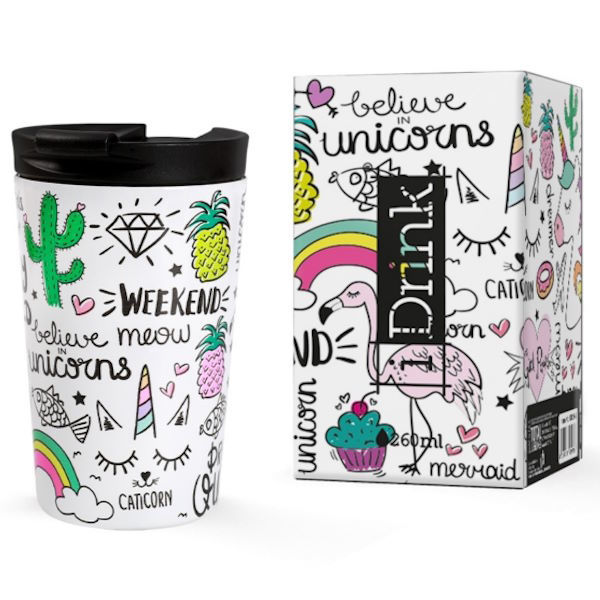 Η ανοξείδωτη κούπα iDrink Unicorn 350ml θα γίνει η αγαπημένη σου συντροφιά για κάθε ρόφημα! Με μαγευτικό σχέδιο μονόκερου σε παστέλ αποχρώσεις, προσθέτει χρώμα και φαντασία στην καθημερινότητά σου. Η κατασκευή από ανοξείδωτο ατσάλι με διπλό τοίχωμα διατηρεί τη θερμοκρασία του ροφήματος – ζεστού ή κρύου – για περισσότερη ώρα, ενώ η χωρητικότητα 350ml είναι ιδανική για καφέ, τσάι ή χυμό. Έρχεται με πρακτικό καπάκι για άνετη χρήση εν κινήσει. Κρατάει το ρόφημα σας 6 ώρες ζεστό και 10 ώρες κρύο.