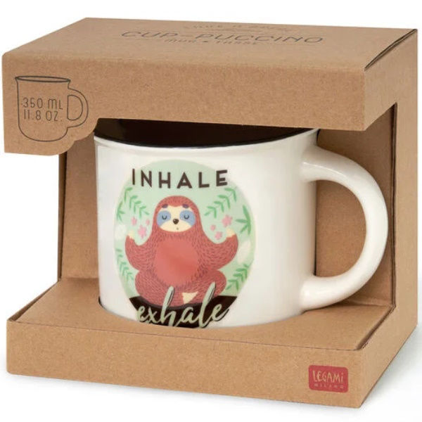 Με την κούπα πορσελάνης Legami Cup-puccino Sloth New Bone China , θα έχετε πάντα καλή παρέα κατά τον πρωινό καφέ σας στο πρωινό ή το απογευματινό τσάι. Με χαριτωμένο σχέδιο και χωρητικότητα 350 ml για το ζεστό ρόφημα της επιλογής σας, αυτή η λευκή και χρωματιστή κούπα με μια διασκεδαστική φράση κάνει ένα φανταστικό δώρο για τα αγαπημένα σας πρόσωπα.