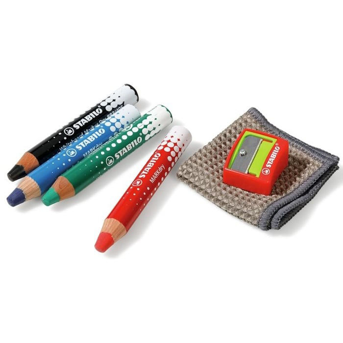 Το σετ κραγιόν πίνακα Stabilo 648/4 προσφέρει πρακτικότητα και ζωντάνια σε κάθε σημείωση ή σχέδιο. Με τέσσερα έντονα χρώματα, ξύστρα και πανί καθαρισμού, είναι ιδανικό για χρήση σε λευκούς πίνακες, γυάλινες επιφάνειες και καθρέφτες.