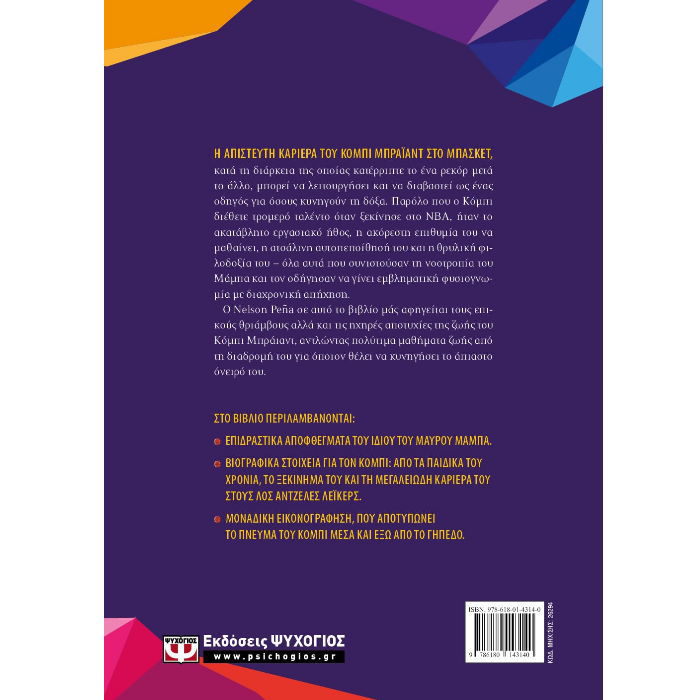 Ο Nelson Pena σε αυτό το βιβλίο μάς αφηγείται τους επικούς θριάμβους αλλά και τις ηχηρές αποτυχίες της ζωής του Κόμπι Μπράιαντ, αντλώντας πολύτιμα μαθήματα ζωής από τη διαδρομή του για όποιον θέλει να κυνηγήσει το άπιαστο όνειρό του.