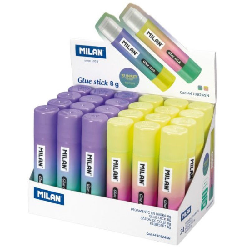 Κόλλα stick Milan Sunset διάφανου χρώματος, σε συσκευασία 8gr. Δεν λερώνει, στεγνώνει εύκολα. Κατάλληλη για χάρτινες επιφάνειες.