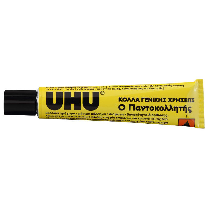 Kόλλα γενικής χρήσεως για διάφανο, γρήγορο και μόνιμο κόλλημα που παραμένει ελαστική. Δεν ζαρώνει το χαρτί.Kόλλα ξύλου, υλικά με βάση το ξύλο, πλαστικά (ABS, σκληρό και μαλακό PVC, Plexiglas®, πολυστυρένιο, Resopal®), μέταλλο, γυαλί, πορσελάνη, κεραμικά, δέρμα, καουτσούκ, τσόχα, φελλό, υφάσματα, χαρτόνι, χαρτί. Δεν είναι κατάλληλο για PE, PP.