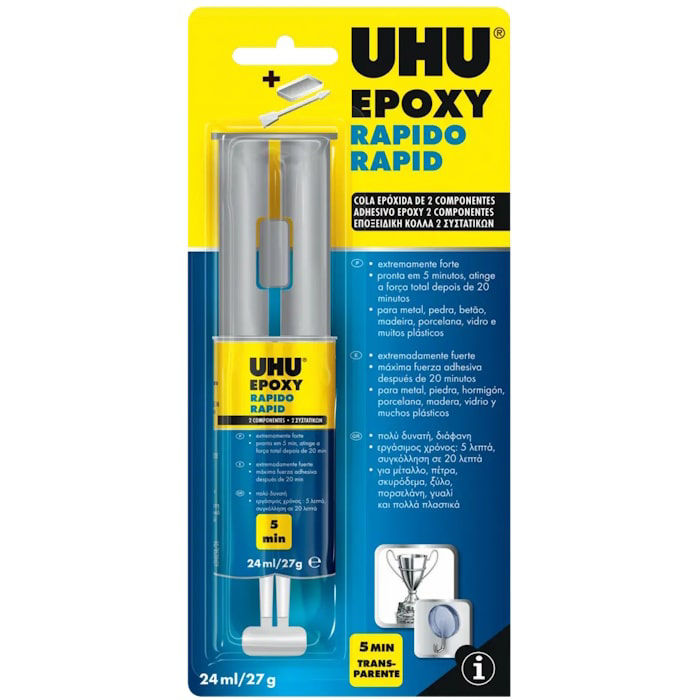 UHU Epoxy Plus 5min 24ml, η διαφανής εποξική κόλλα που σκληραίνει γρήγορα και αντέχει στα πάντα