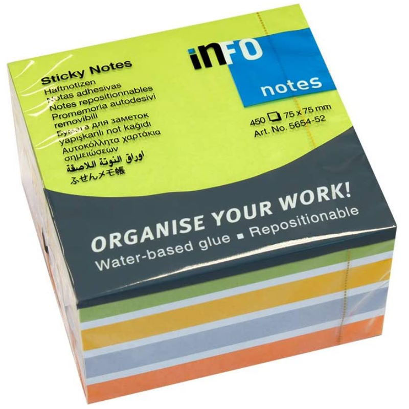 Κύβος Info αυτοκόλλητος 5654-52 Χαρτάκια αυτοκόλλητα σε δίασταση 75Χ75mm. Η συσκευασία έχει 450 φύλλα .