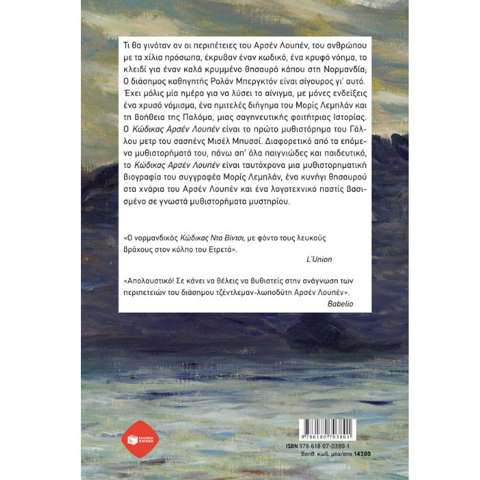 Τι θα γινόταν αν οι περιπέτειες του Αρσέν Λουπέν, του ανθρώπου με τα χίλια πρόσωπα, έκρυβαν έναν κωδικό, ένα κρυφό νόημα, το κλειδί για έναν καλά κρυμμένο θησαυρό κάπου στη Νορμανδία; Ο διάσημος καθηγητής Ρολάν Μπεργκτόν είναι σίγουρος γι’ αυτό. Έχει μόλις μία ημέρα για να λύσει το αίνιγμα, με μόνες ενδείξεις ένα χρυσό νόμισμα, ένα ημιτελές διήγημα του Μορίς Λεμπλάν και τη βοήθεια της Παλόμα, μιας σαγηνευτικής φοιτήτριας Ιστορίας. Ο Κώδικας Αρσέν Λουπέν είναι το πρώτο μυθιστόρημα του Γάλλου μετρ του σασπένς Μισέλ Μπυσσί. Διαφορετικό από τα επόμενα μυθιστορήματά του, πάνω απ’ όλα παιγνιώδες και παιδευτικό, το Κώδικας Αρσέν Λουπέν είναι ταυτόχρονα μια μυθιστορηματική βιογραφία του συγγραφέα Μορίς Λεμπλάν, ένα κυνήγι θησαυρού στα χνάρια του Αρσέν Λουπέν και ένα λογοτεχνικό παστίς βασισμένο σε γνωστά μυθιστορήματα μυστηρίου.