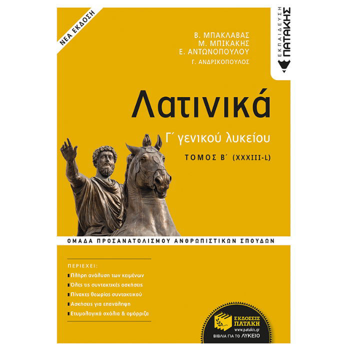 Το παρόν δίτομο βοήθημα περιέχει την ανάλυση των μαθημάτων που διδάσκονται στη Γ΄ Λυκείου. Ακολουθεί το νέο Πρόγραμμα σπουδών για το μάθημα των Λατινικών. Στηρίζεται στις παρατηρήσεις του σχολικού βιβλίου, του Βιβλίου του καθηγητή, του βιβλίου «Αξιολόγηση» του Κ.Ε.Ε. και των Ψηφιακών Βοηθημάτων του Υπουργείου Παιδείας..