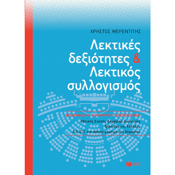 Στους γραπτούς διαγωνισμούς που διοργανώνονται από το ΑΣΕΠ, από την Εθνική Σχολή Δημόσιας Διοίκησης, από τράπεζες ή άλλους φορείς συμπεριλαμβάνεται συνήθως (είτε ως αυτοτελές εξεταστέο γνωστικό αντικείμενο είτε ως τμήμα του Τεστ δεξιοτήτων) το αντικείμενο των Λεκτικών δεξιοτήτων ή/και του Λεκτικού συλλογισμού. Έτσι, στον διαγωνισμό ΑΣΕΠ που προβλέπεται να διεξαχθεί την άνοιξη του 2023 θα εξεταστεί, μεταξύ των άλλων, το γνωστικό αντικείμενο του Λεκτικού συλλογισμού. Το βιβλίο αυτό είναι κατάλληλο για την προετοιμασία των υποψηφίων για τον διαγωνισμό ΑΣΕΠ της άνοιξης του 2023, καθώς περιλαμβάνει θεωρία και Κριτήρια αξιολόγησης για το γνωστικό αντικείμενο του Λεκτικού συλλογισμού.