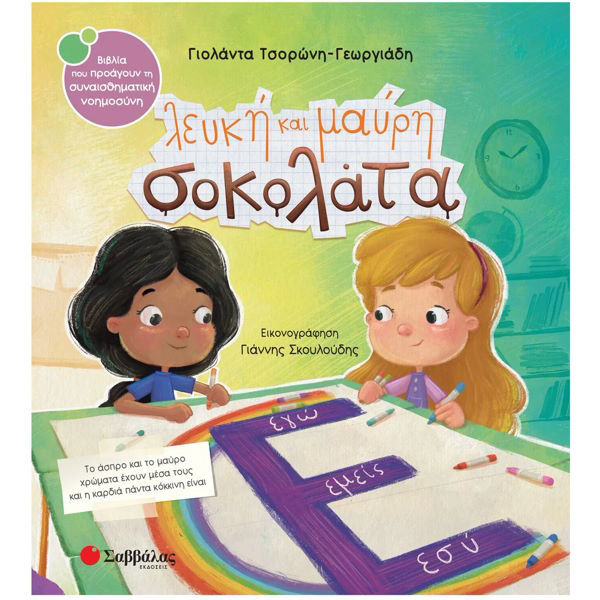 Στο σχολείο της Λευκής έρχεται κάποια μέρα η Σάρα, μια καινούρια μαθήτρια. Είναι μελαμψή. Πολύ μελαμψή. Δε μοιάζει με τα άλλα κορίτσια της τάξης. «Σαν τη μέρα με τη νύχτα!», «Γάλα η μια, κακάο η άλλη!», «Το φως και το σκοτάδι» σχολιάζουν τη διαφορά μερικοί μαθητές. Πώς ένα ουράνιο τόξο και μερικές τέμπερες κατάφεραν να πείσουν τους μαθητές πως τα παιδιά είτε άσπρα είναι είτε μελαμψά είναι πάντοτε γλυκά σαν τη λευκή και τη μαύρη σοκολάτα;