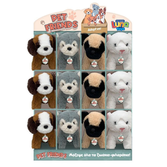 Λούτρινο Ζωάκι Pet Friends 12 εκ. Luna Toys 4 Σχέδια, το τέλειο δώρο για κάθε παιδί που αγαπά τα ζώα! Με απαλή υφή και προσεγμένη κατασκευή, το Λούτρινο Ζωάκι Pet Friends είναι ιδανικό για αγκαλιές και παιχνίδι. Κατάλληλο για παιδιά όλων των ηλικιών, ενισχύει τη φαντασία και την τρυφερότητα, προσφέροντας έναν πιστό φίλο που συνοδεύει το παιδί σε κάθε του περιπέτεια. Ένα αξιαγάπητο και ασφαλές λούτρινο που σίγουρα θα γίνει το αγαπημένο τους!