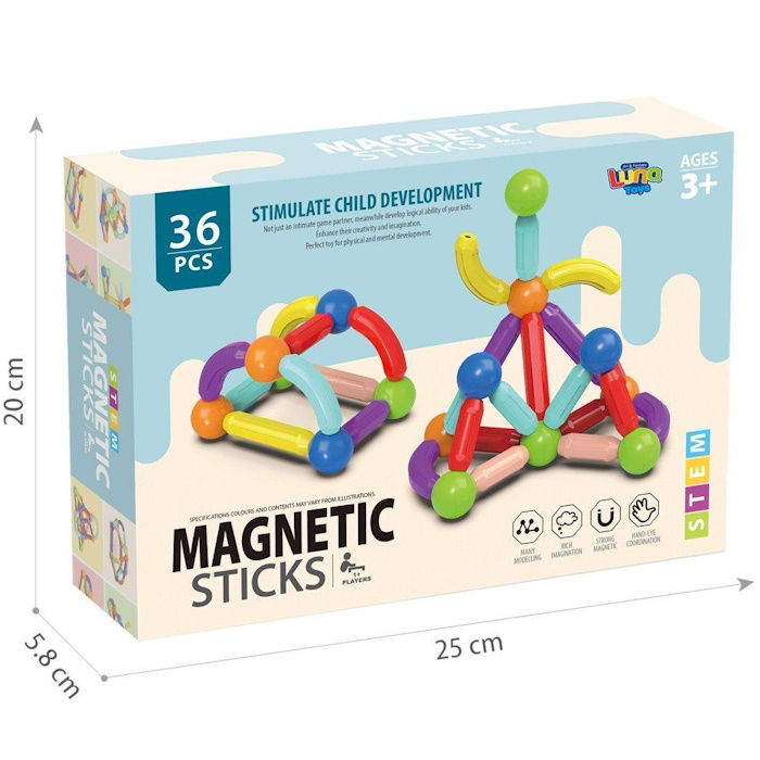 Luna Toys Μαγνητικά Τουβλάκια 36τμχ - Δημιούργησε, Σχεδίασε, Ανακάλυψε!