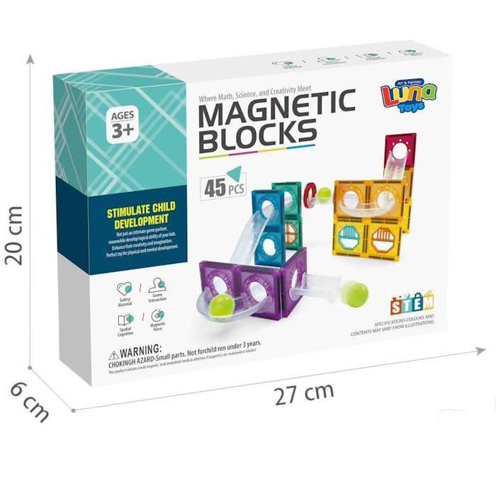 Luna Toys Μαγνητικά Τουβλάκια 45τμχ - Δημιούργησε, Σχεδίασε, Ανακάλυψε!