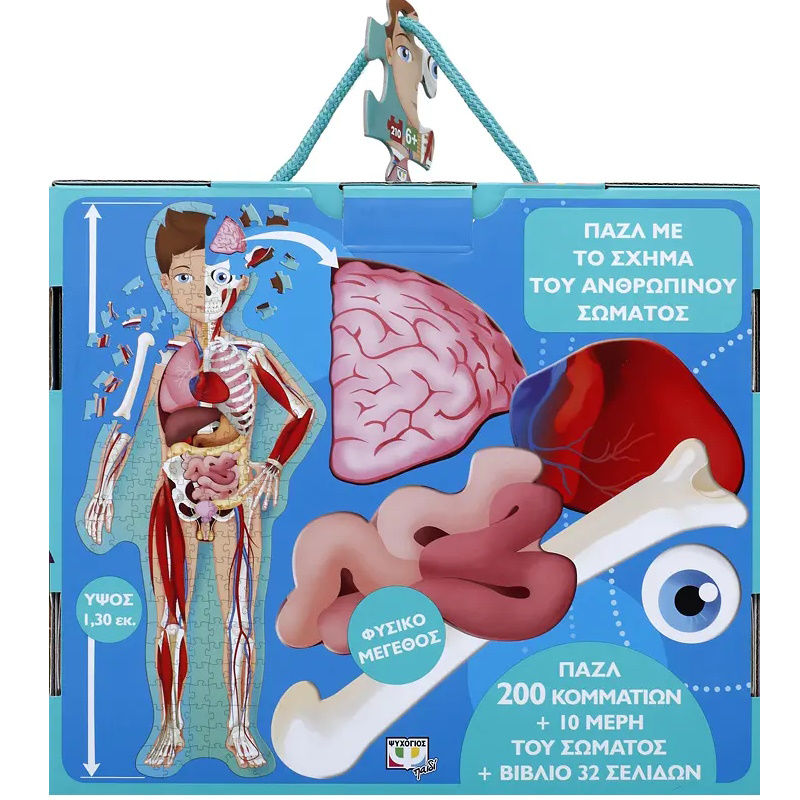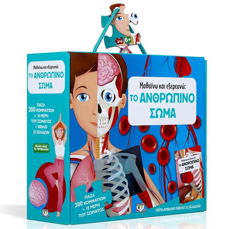 Εξερεύνησε το ανθρώπινο σώμα και ανακάλυψε τα πάντα γι’ αυτό! Διάβασε το βιβλίο και μάθε για τον ανθρώπινο σκελετό, τους μυς, το κυκλοφορικό, το αναπνευστικό και το πεπτικό σύστημα, καθώς και για τον εγκέφαλο. Ύστερα δοκίμασε τη μνήμη σου ενώνοντας τα κομμάτια του παζλ!