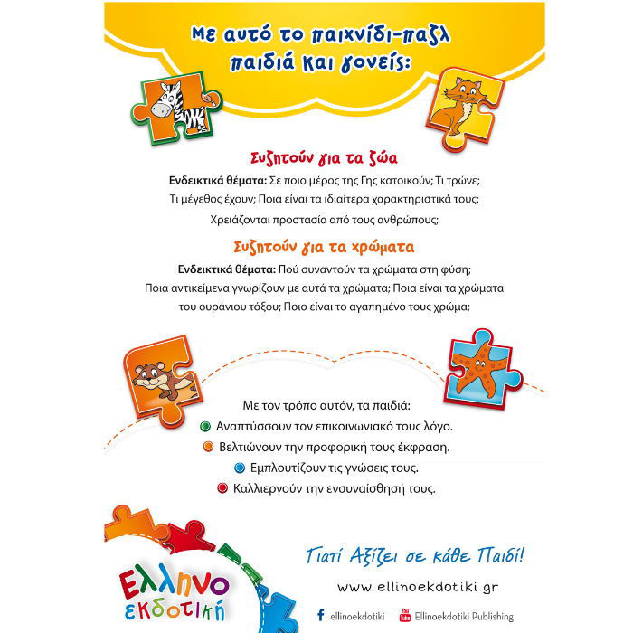 με τα οποία οι μικροί μας φίλοι θα γνωρίσουν 8 υπέροχα Ζωάκια και αντίστοιχα βασικά Χρώματα.
