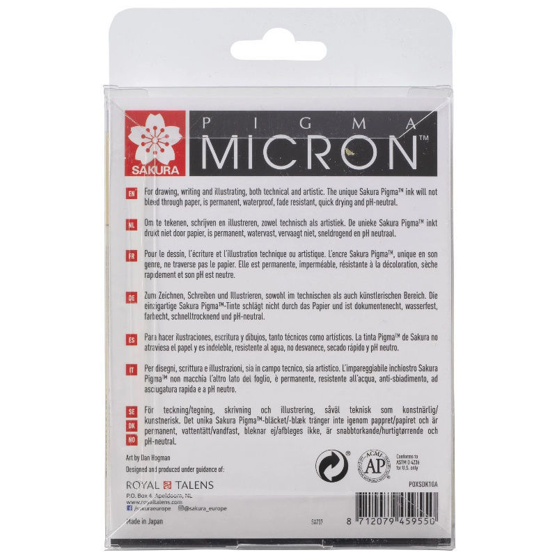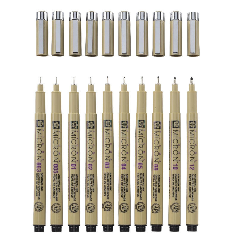 Το σετ μαρκαδοράκια σχεδίου Sakura Pigma Micron δέκα τεμαχίων προσφέρει εξαιρετική ακρίβεια με πάχος γραφής από 0.03 έως 1.2 χιλιοστά και είναι ιδανικό για καλλιτέχνες που χρειάζονται καθαρές λεπτές γραμμές αλλά και πιο έντονες πινελιές. Η σειρά αυτή απευθύνεται σε όσους αναζητούν την υψηλότερη ποιότητα για τεχνικό σχέδιο, κόμικς και επαγγελματικό σκίτσο.