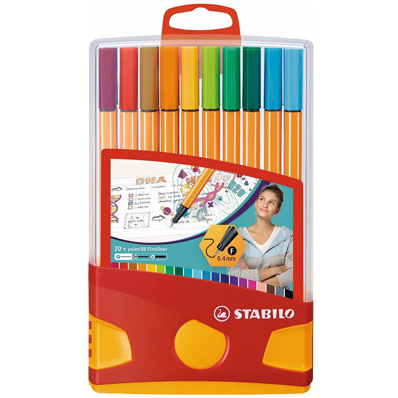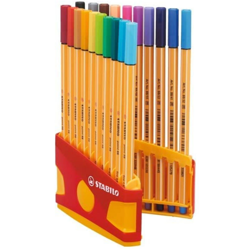 Η μοναδική μορφή του STABILO point 88 το έχει καταστήσει ένα από τα πλέον αναγνωρίσιμα STABILO και δίκαια θεωρείται προϊόν με ‘status’ και αξιοπιστία.Η πλαστική κασετίνα περιλαμβάνει 20 μαρκαδόρους με λεπτή έντονη γραφή, ιδανικούς για σχέδιο και υπογράμμιση κειμένων.