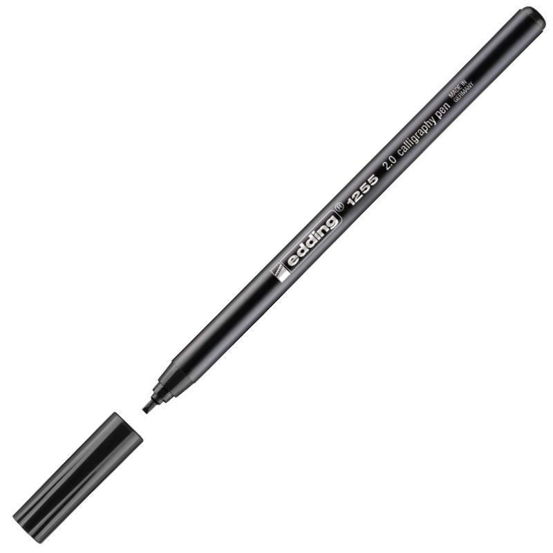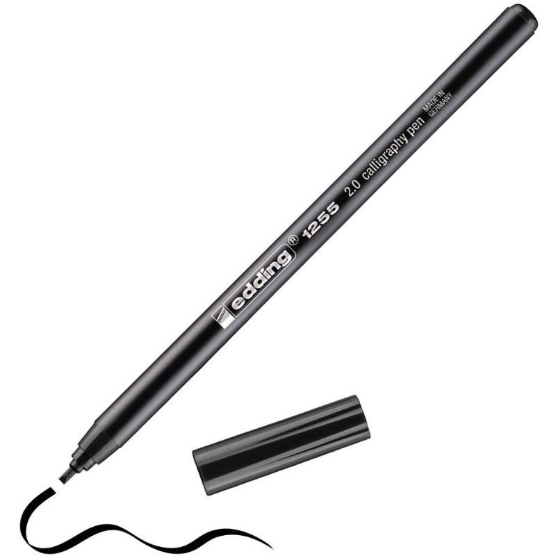 Edding 1255 calligraphy - μαρακδοράκι καλλιγραφίας. Fasermaler με μαύρο πλαστικό στέλεχος . Η άκρη του επιτρέπει διαφορετικά πλάτη γραμμής. Μόνιμη μελάνι είναι αδιάβροχο σε όλες σχεδόν τις επιφάνειες. Με βάση το νερό μελάνι. πάχος της γραμμής: 2,0 mm. Με ειδική μύτη, πρέπει να κρατάτε το στυλό με την ίδια γωνία ανά πάσα στιγμή. Κάνοντας αυτό μπορείτε να επιτύχετε το μοναδικό στυλ γραφής της καλλιγραφίας. Μπορείτε να μάθετε ακριβώς πώς να δημιουργήσετε καλλιγραφία στο διαδραστικό μας μάθημα καλλιγραφίας .