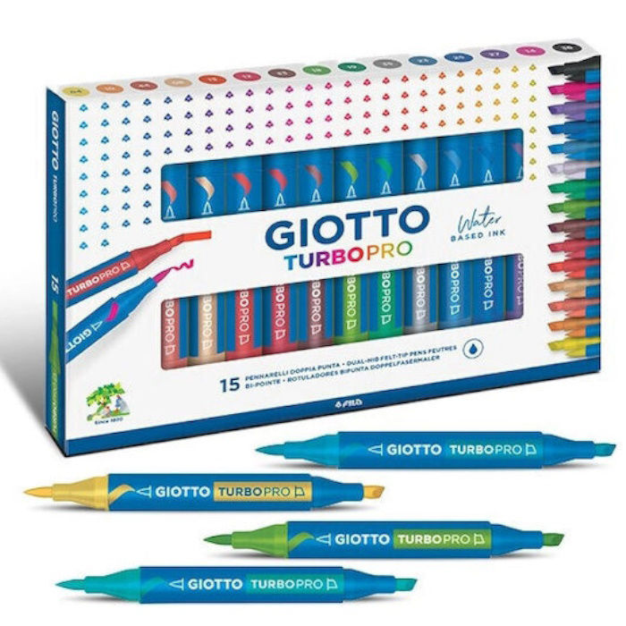 Μαρκαδόροι με διπλή μύτη Giotto Turbo Pro σετ 15τεμ.