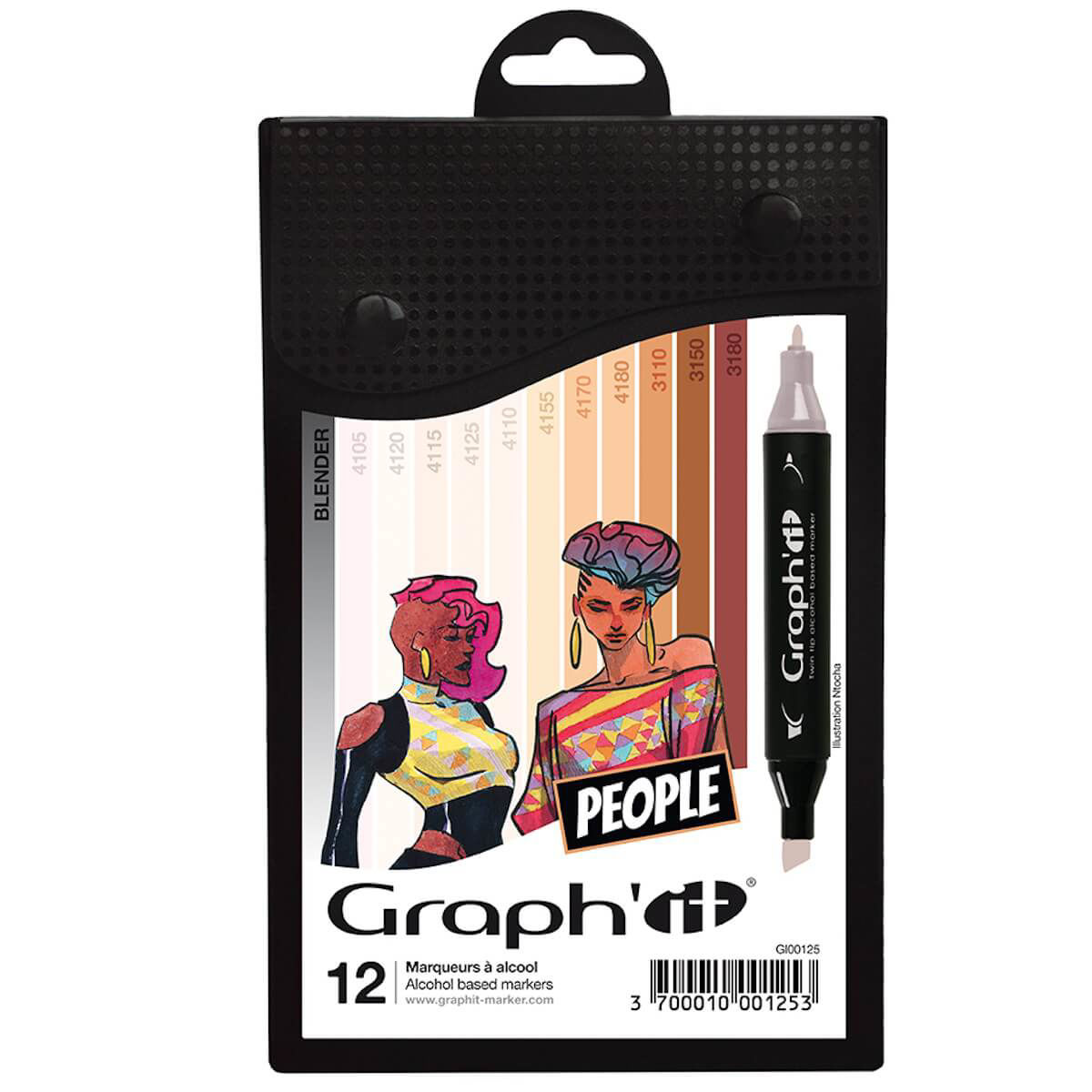Μαρκαδόροι οινοπνεύματος Graph it με διπλή μύτη 12τεμ. Skin GI00125