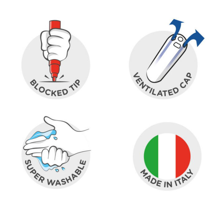 Πλενόμενοι μαρκαδόροι με λεπτή μύτη για γραφή ακριβείας. Σε οικολογική συσκευασία με 12 χρώματα.