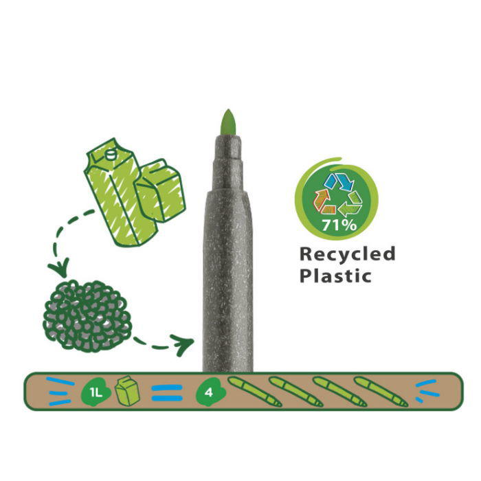 - Κάθε μαρκαδόρος είναι κατασκευασμένος από 71% ανακυκλωμένο υλικό