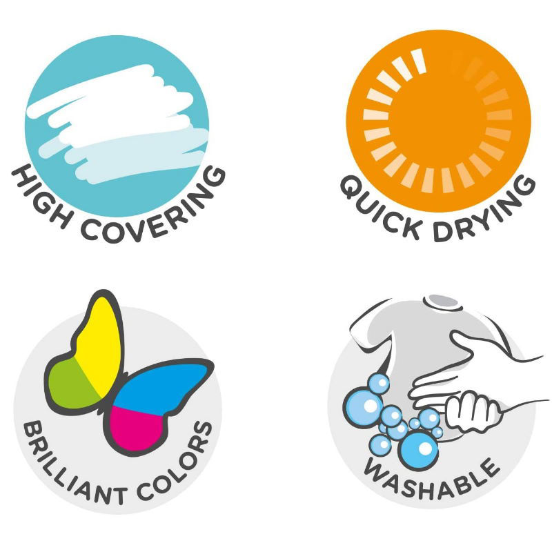 Η συσκευασία τύπου twist-up (σαν κραγιόν) επιτρέπει εύκολη χρήση από παιδιά, χωρίς να λερώνονται. Είναι μη τοξικοί, πλενόμενοι και κατάλληλοι για ηλικίες 3 ετών και άνω. Ένα ιδανικό εργαλείο για σχολικές εργασίες, χειροτεχνίες και δημιουργικό παιχνίδι.