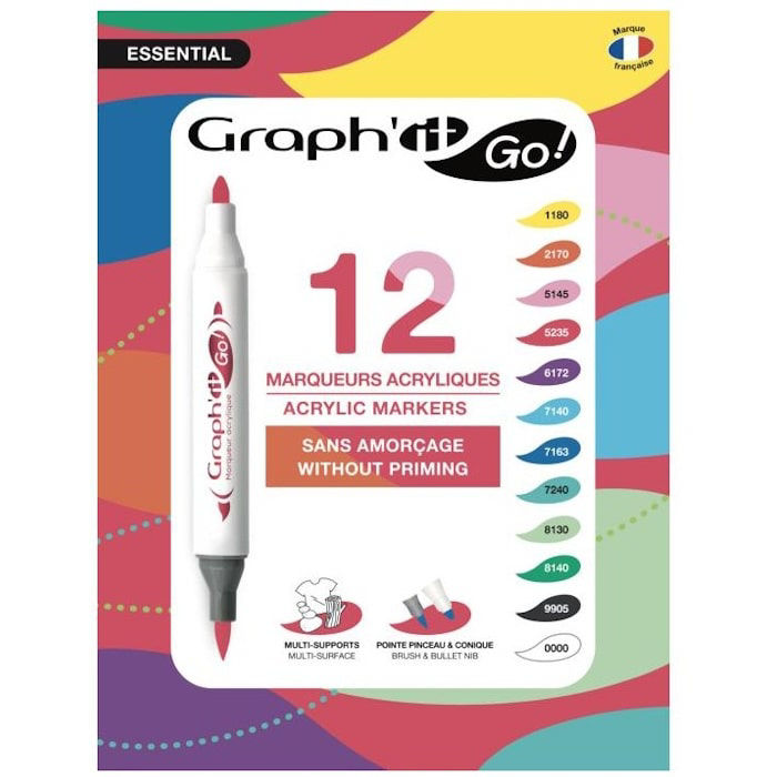 Graph’it GO Essential Ακρυλικοί Μαρκαδόροι 12τεμ GG09943, έμπνευση και επαγγελματικό αποτέλεσμα σε κάθε επιφάνεια.