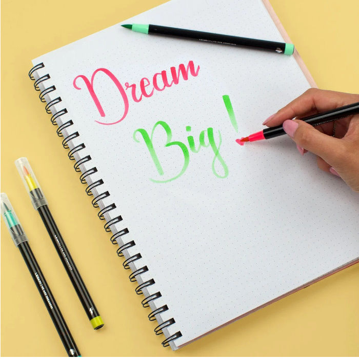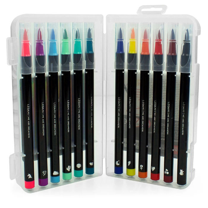Απελευθερώστε τον εσωτερικό σας καλλιτέχνη με το σετ Legami με 12 μαρκαδόρους πινέλου σε φωτεινούς τόνους . Αυτά τα ζωντανά εργαλεία περιέχουν μια εύκαμπτη άκρη βούρτσας από νάιλον ίνες που αναδημιουργεί την εμπειρία ζωγραφικής χωρίς χάος. Αλλάζοντας την πίεση και την κλίση της άκρης, δίνετε ελευθερία στη δημιουργικότητά σας. Και χάρη στο μελάνι με βάση το νερό στο εσωτερικό, μπορείτε εύκολα να επιτύχετε ένα εφέ ακουαρέλας ανακατεύοντάς το με λίγο νερό και χρησιμοποιώντας ένα πινέλο για να δημιουργήσετε όμορφες εικόνες χρησιμοποιώντας το ζωντανό ουράνιο τόξο των χρωμάτων.