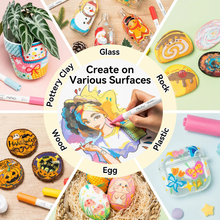 Οι ακρυλικοί μαρκαδόροι Ohuhu της σειράς Kalalau προσφέρουν μια εξαιρετική εμπειρία ζωγραφικής με την αίσθηση πινέλου, με τον κωδικό 80601-82 να αποτελεί την ιδανική επιλογή για καλλιτέχνες που αναζητούν ροή και ακρίβεια. Το σετ των 30 τεμαχίων καλύπτει την ανάγκη για ζωντανά, καλυπτικά χρώματα που εφαρμόζονται με απαλότητα σε πλήθος επιφανειών, όπως χαρτί, καμβά, πέτρα και κεραμικά. Η ενσωμάτωση του SKU 80601-82 στον εξοπλισμό σας διασφαλίζει τη χρήση της σειράς Kalalau, η οποία είναι ειδικά σχεδιασμένη για να προσφέρει την ευελιξία ενός πινέλου με την ευκολία ενός μαρκαδόρου.