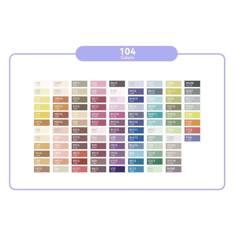 Το σετ Ohuhu Alcohol Art Markers 104 Brush & Chisel προσφέρει την τέλεια ισορροπία ανάμεσα σε ποικιλία χρωμάτων και ευκολία στη χρήση. Με 104 αποχρώσεις και έναν colorless blender, αποτελεί το ιδανικό εργαλείο για όσους θέλουν να αποδώσουν ζωντανά σχέδια, με ομαλές διαβαθμίσεις και επαγγελματικό φινίρισμα.