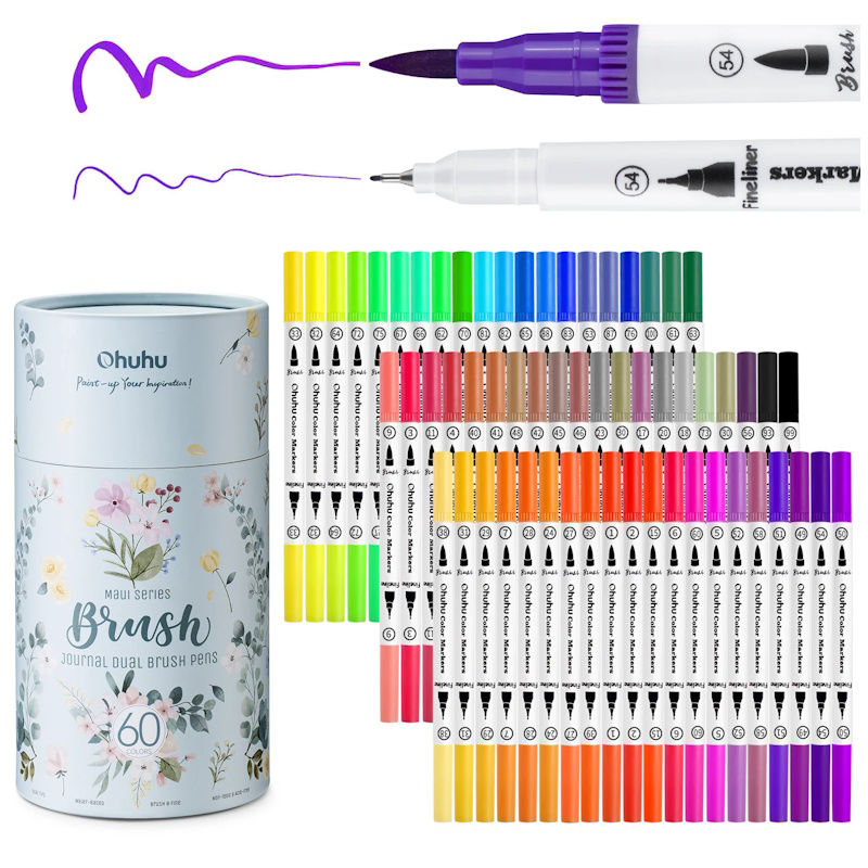Ένα νέο μοναδικό σετ 60 διπλών μαρκαδόρων με έντονα χρώματα από την Ohuhu, σε φανταστική συσκευασία.
