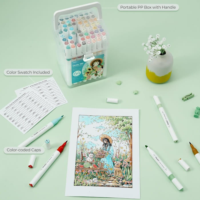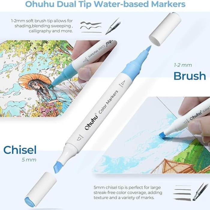 Οι Μαρκαδόροι Ohuhu Water-based Coloring Markers Dual 64τεμ. προσφέρουν μια ολοκληρωμένη λύση για καλλιτέχνες και ερασιτέχνες που αναζητούν την ποιότητα και την ευελιξία των υδατοδιαλυτών μελανιών. Το συγκεκριμένο σετ είναι σχεδιασμένο για να καλύπτει τις ανάγκες δημιουργίας έντονων σχεδίων αλλά και απαλών χρωματικών μεταβάσεων, χωρίς την έντονη οσμή των μαρκαδόρων οινοπνεύματος.