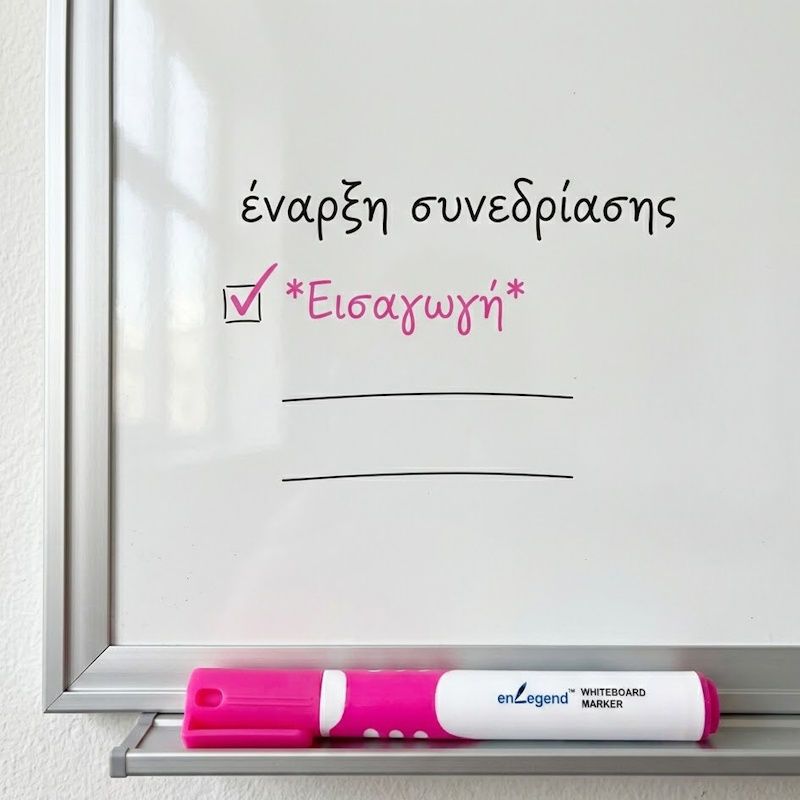 Ο μαρκαδόρος ασπροπίνακα Enlegend ροζ fancy grip αποτελεί την ιδανική επιλογή για όσους αναζητούν ζωντάνια και άνεση στις παρουσιάσεις ή τη διδασκαλία τους. Καλύπτει πλήρως την ανάγκη για έναν μαρκαδόρο που συνδυάζει την αισθητική με την εργονομία, κάνοντας τη γραφή στον λευκό πίνακα μια ευχάριστη και ξεκούραστη διαδικασία, διαθέτει ειδικά σχεδιασμένη λαβή fancy grip που προσφέρει σταθερό κράτημα και αποτρέπει τη γρήγορη κόπωση του χεριού. Η στρογγυλή μύτη του εξασφαλίζει ομοιόμορφη ροή ροζ μελάνης με πάχος γραφής από 2.0mm έως 3.0mm, ενώ το σώμα από πολυπροπυλένιο εγγυάται τη μακροχρόνια αντοχή του στελέχους.