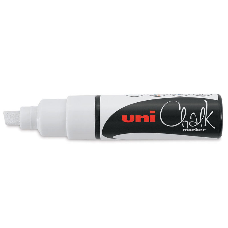 Μαρκαδόρος κιμωλίας PWE-8Κ Uni-Ball όπου σβήνει εύκολα από μη πορώδεις επιφάνειες με ένα υγρό πανί.Ανθεκτικό στη βροχή, στο χιόνι και σε όλες τις καιρικές συνθήκες.Αδιαφανές μελάνι και ζωντανά χρώματα. Χωρίς διαλύτες, χωρίς οινόπνευμα.