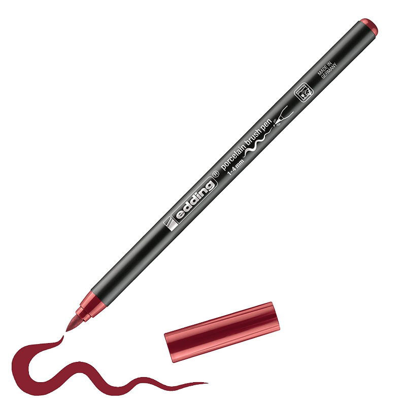 Μαρκαδόρος πορσελάνης Edding κατάλληλοι για στιλβωμένο καραμικό, γυαλί ανθεκτικό στην θερμοκρασία. Πλένεται σε πλυντήριο πιάτων αδού στερεοποιηθεί η βαφή στο φούρνο. Εύκαμπτη μύτη πινέλου για βαφή μεγάλης επιφάνειας, αλλά και μικρών λεπτομερειών. Η μεταξένια υφή που παράγει ομοιόμορφο αποτέλεσμα. Η μελάνη του δεν στάζει και δεν απλώνεται. Σε έντονα χρώματα με βάση το νερό και ουδέτερη μυρωδιά.