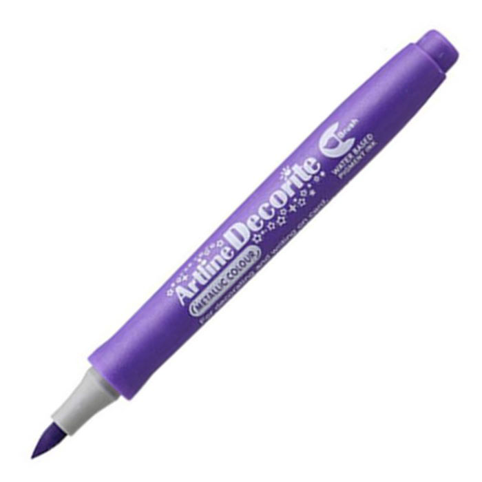 Μαρκαδόρος Decorite με μύτη πινέλο από την Artline. Ο μαρκαδόρος αυτός είναι ιδανικός για εφέ πάνω σε σκούρο χαρτόνι, χαρτί, ξύλο, κεραμικά, πορσελάνη, μέταλλο, πλαστικό, γυαλί και μπορεί εύκολα να αφαιρεθεί από μη πορώδεις επιφάνειες με νερό. Περιέχει μελάνι χρωστικής με βάση το νερό χωρίς ξυλόλιο.