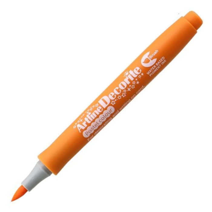 Μαρκαδόρος Decorite με μύτη πινέλο από την Artline. Ο μαρκαδόρος αυτός είναι ιδανικός για εφέ πάνω σε σκούρο χαρτόνι, χαρτί, ξύλο, κεραμικά, πορσελάνη, μέταλλο, πλαστικό, γυαλί και μπορεί εύκολα να αφαιρεθεί από μη πορώδεις επιφάνειες με νερό. Περιέχει μελάνι χρωστικής με βάση το νερό χωρίς ξυλόλιο.