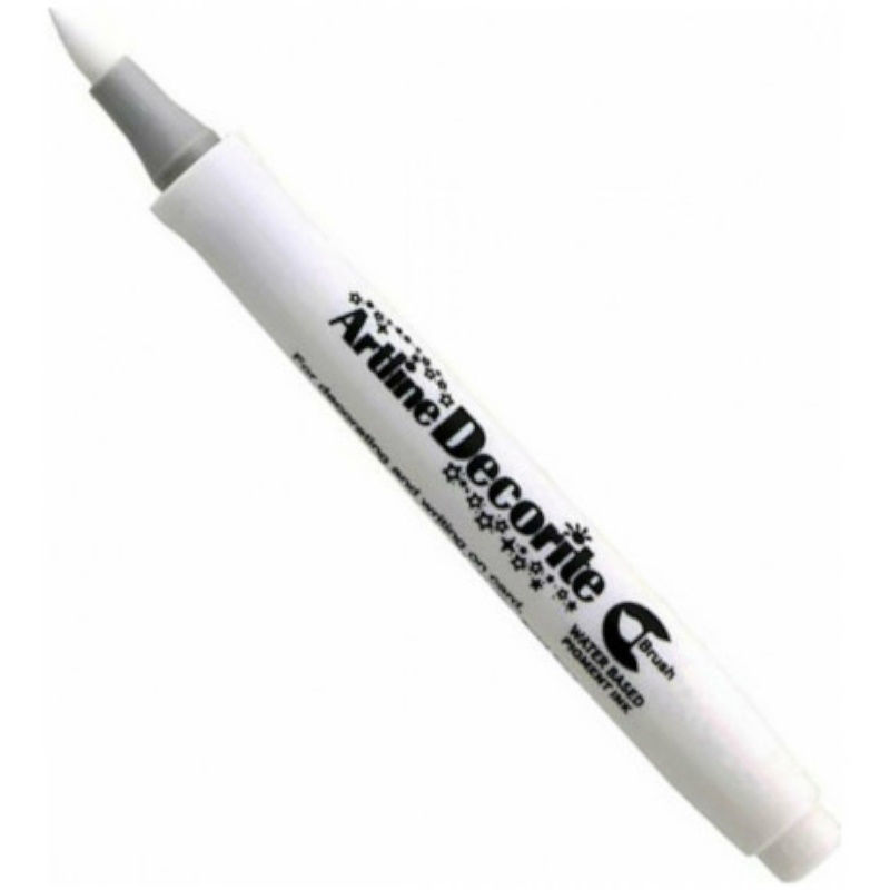 Μαρκαδόρος Decorite με μύτη πινέλο από την Artline. Ο μαρκαδόρος αυτός είναι ιδανικός για εφέ πάνω σε σκούρο χαρτόνι, χαρτί, ξύλο, κεραμικά, πορσελάνη, μέταλλο, πλαστικό, γυαλί και μπορεί εύκολα να αφαιρεθεί από μη πορώδεις επιφάνειες με νερό. Περιέχει μελάνι χρωστικής με βάση το νερό χωρίς ξυλόλιο.