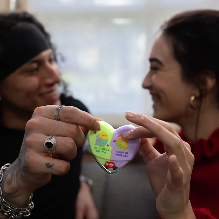 Ο Heartlighter της Legami Milano δεν είναι ένας απλός υπογραμμιστής. Διαθέτει δύο άκρα που εξυπηρετούν διαφορετικούς σκοπούς: από τη μία πλευρά, μια κλασική λοξή μύτη για παραδοσιακή υπογράμμιση κειμένου και από την άλλη, μια ειδική σφραγίδα σε σχήμα καρδιάς.