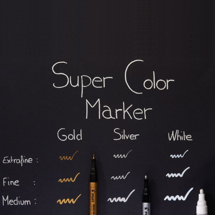 Το Super Color είναι ένας ασημί χρώματος μαρκαδόρος βαφής με λεπτές μύτες, επίσης σε χρυσό και λευκό. Το μόνιμο μελάνι του είναι ανθεκτικό στο νερό και στο φως, κατάλληλο για όλες τις επιφάνειες. Eίναι ιδανικό για τη διακόσμηση όλων των ειδών αντικειμένων από πλαστικό, γυαλί, χαρτόνι κ.λπ.