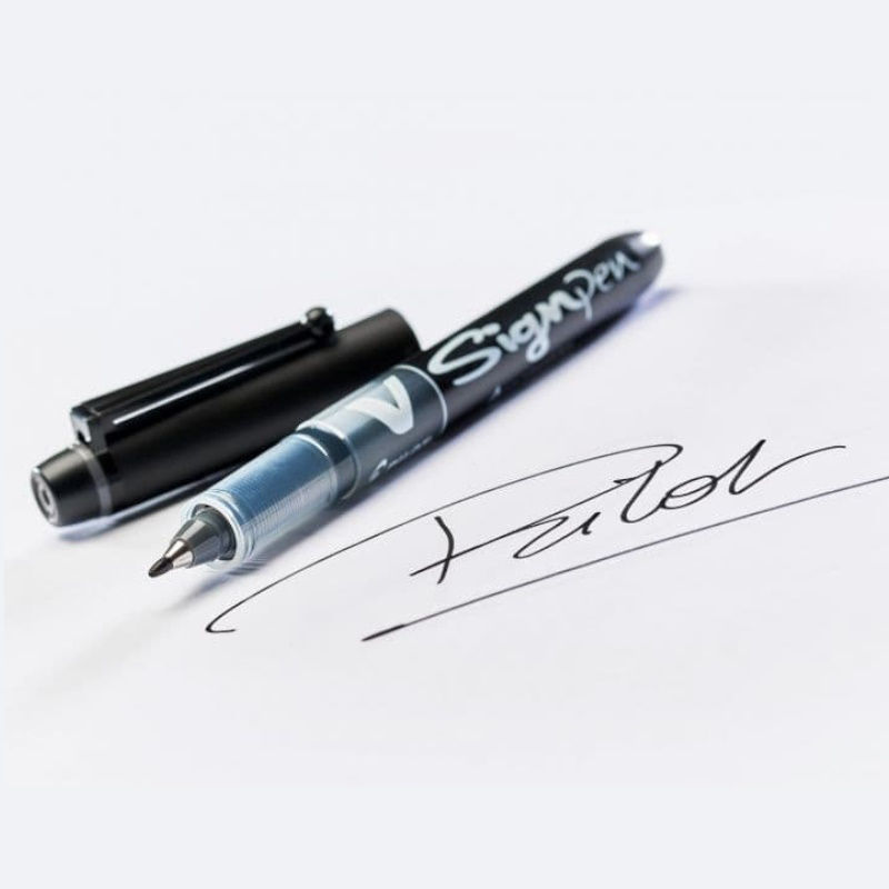 Mαρκαδόρος V SIGN PEN υγρής μελάνης, εξοπλισμένος με ρυθμιστή για τέλεια ροή μελανιού, ορατή στάθμη μελανιού & μύτη από ίνες πολυεστέρα. Το επίπεδο μελάνης είναι ορατό - έτσι δεν θα υπάρχουν άλλες εκπλήξεις. Θα χαρείτε την ομαλότητα και τη μακροζωία της γραφής του V-Sign Pen