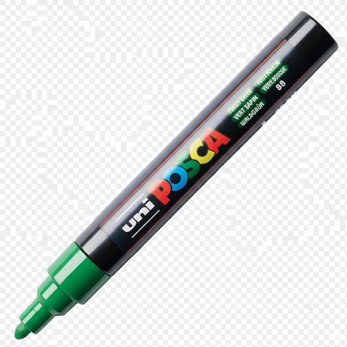 Ο μαρκαδόρος Posca PC-5M English Green (English Green 88) αποδίδει μια πλούσια, σκούρα πράσινη απόχρωση που θυμίζει το χρώμα του δάσους ή των κλασικών αγωνιστικών αυτοκινήτων. Είναι η ιδανική επιλογή για καλλιτέχνες που θέλουν να αποδώσουν ρεαλιστικά τη βλάστηση, να δημιουργήσουν βάθος στα έργα τους ή να γράψουν με ένα χρώμα που αποπνέει σοβαρότητα και κύρος. Η μεσαία στρογγυλή μύτη του προσφέρει την απαραίτητη ευελιξία για να καλύψετε μεσαίες επιφάνειες αλλά και να σχεδιάσετε καθαρές γραμμές.